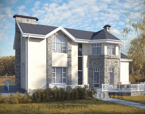 Фасад – декоративная штукатурка и натуральный камень.