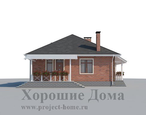 Одноэтажный загородный дом, простой, добротный, экономичный, предназначен для ценителей сельского образа жизни без изысков и пышностей, но в то же время знающих цену высокому уровню комфорта и удобства, который достигается удачной и рациональной планировкой внутреннего пространства дома, в котором каждый сантиметр площади несёт свою смысловую нагрузку.