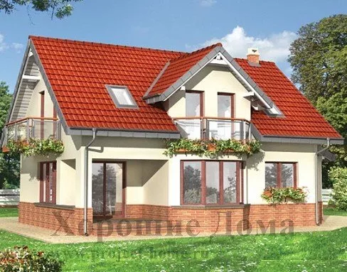 Светлый уютный коттедж в традициях стиля кантри с лаконичным дизайном фасада, светлым эркером и асимметричной двухскатной крышей, под которой находится также и гараж, выполненный в виде пристройки к основному объёму здания. Дом предназначен для проживания небольшой семьи в теплое время года.