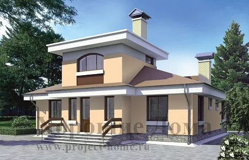 Отделка фасада – декоративная штукатурка с элементами декора и фрагментами из натурального камня.
