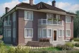 Солидный загородный дом без архитектурных излишеств, но в то же время не лишённый самобытности, смотрится добротно и дорого. Парадная лестница является достойным украшением главного входа. В доме много окон, которые декорированы по периметру выступающими на фасаде элементами. На первом этаже расположен просторный каминный зал и кухня, а также гостевая спальня, котельная и комната для активного отдыха и занятий спортом.