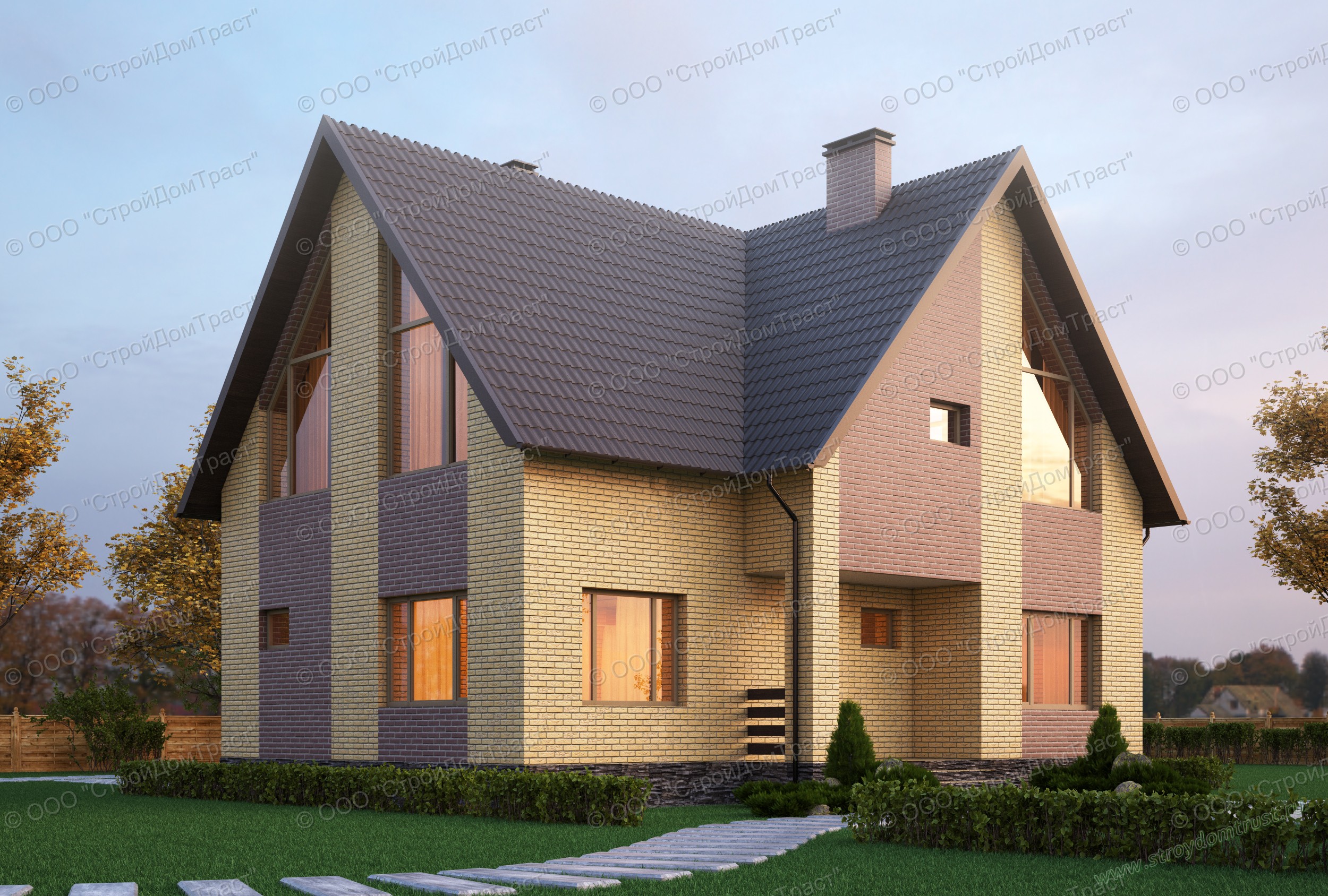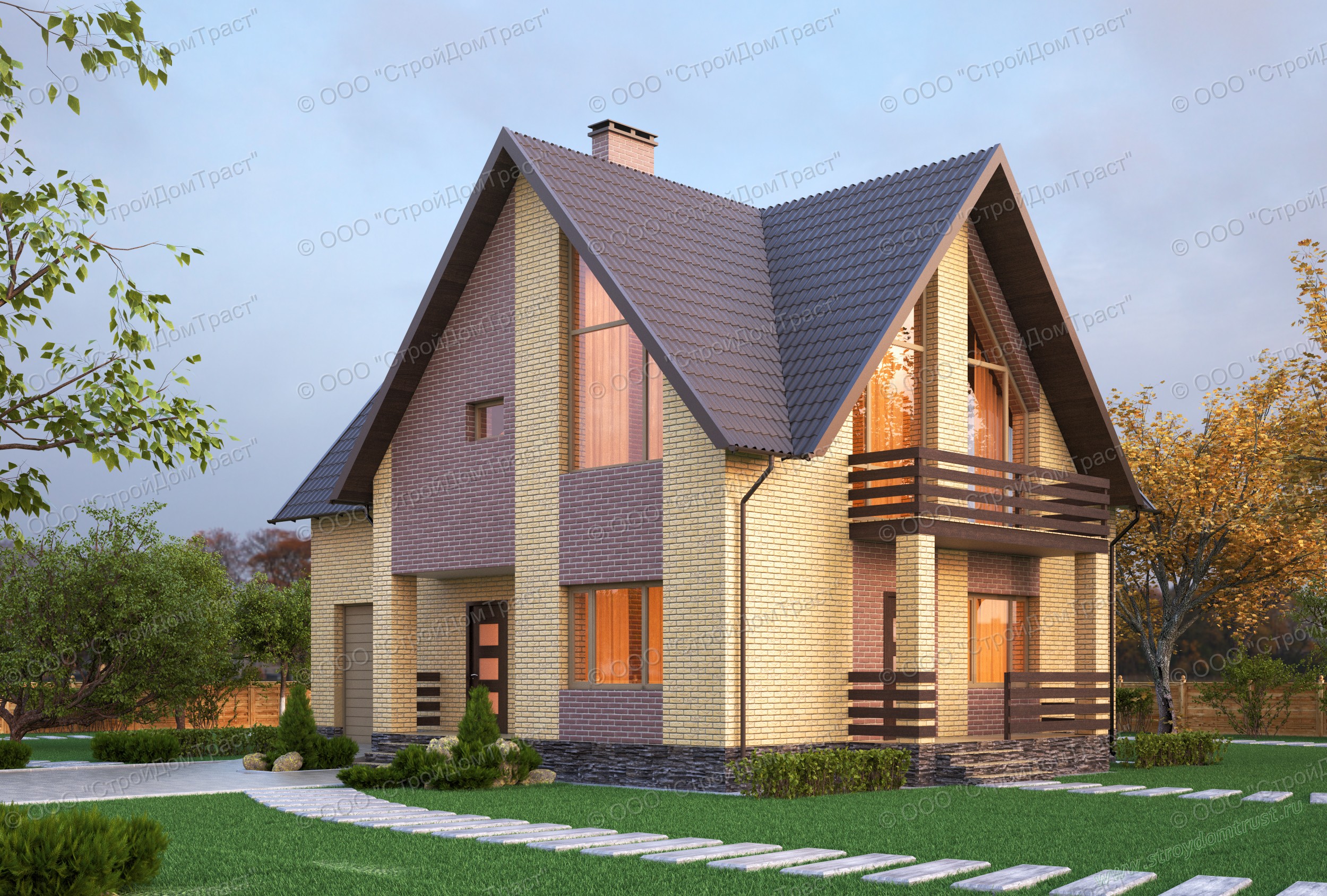 Презентабельный особняк в два этажа с гаражом — это как раз то, что требуется семье, которая не хочет отказывать себе в комфорте и уюте. Дом выглядит аккуратно и элегантно в своей неброской красоте. Красивое сочетание светлого и тёмного облицовочного кирпича на стенах добавляют в его облик шарма. А остроскатная ломаная крыша — величавого достоинства.