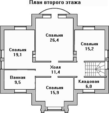 На втором этаже расположилась спальная зона, там находятся четыре спальни, большая общая ванная комната, холл и кладовая. Самая большая спальня - спальня хозяев дома оборудована небольшим уютным балконом.