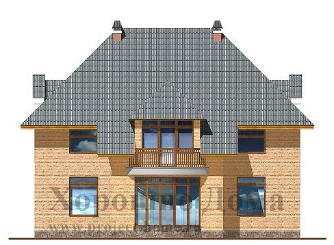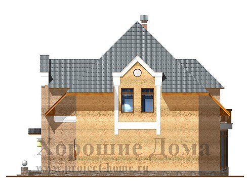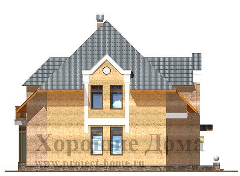Отделка фасада - облицовочный кирпич с элементами декора, цоколь и крыльцо облицованы плиткой из природного камня.