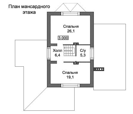 Широкая лестница ведёт из холла первого этажа на мансардный этаж, где находятся две большие спальни с красивыми арочными окнами и санузел. Площадь спален позволяет оборудовать в каждой из них персональные гардеробные комнаты.