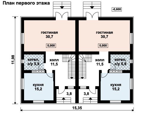 Дом добротный, надёжный и рациональный. Его внутренняя планировка говорит сама за себя: ни сантиметра площади без смысловой нагрузки! На первом этаже в центре помещения располагается просторный холл с лестницей, ведущей в мансарду. Холл имеет связь со всеми помещения этажа. Просторная гостиная, в которой можно установить электрический камин, имеет выход на участок через эффектную распашную арочную дверь. В помещении санузла установлен газовый котёл отопления.