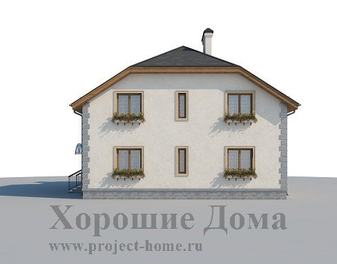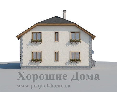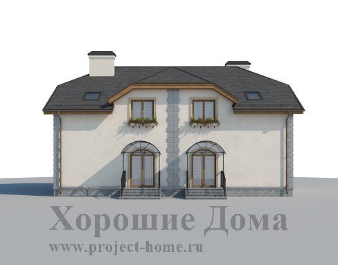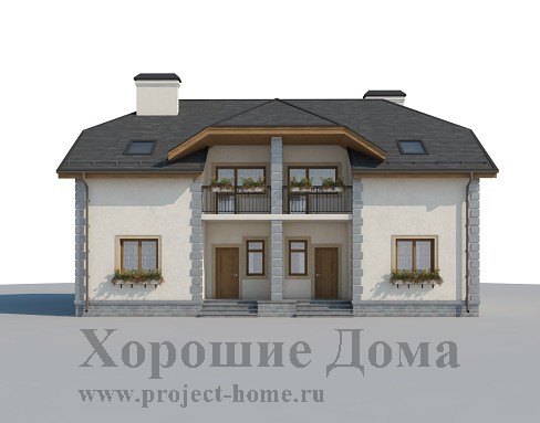 Строгий классический загородный дом на две семьи или для небольшого семейного гостиничного бизнеса. Фасад коттеджа имеет лаконичную отделку с минимумом архитектурного декора. Главный вход в дом организован с небольшого утопленного крыльца, на которым выполнен небольшой балкон с эффектным козырьком, как выдающейся части двухскатной кровли.