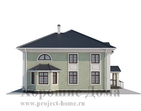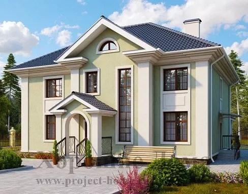 Современный стиль и занимательные архитектурные решения при оформлении фасада этого особняка не оставят равнодушными к данному проекту. Этот коттедж обладает практически всеми преимуществами перед подобными проектами загородных домов.