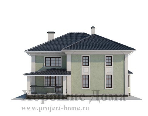 В доме предусмотрено три входа, это главный центральный вход, имеющий небольшое крыльцо под крышей, выход на придомовую территорию с собственной террасой, а так же незаметный вход в помещение котельной сбоку здания.