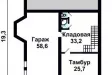 Планировка дома включает частично заглублённый в склон цокольный этаж, на котором размещается гараж для одного авто с просторными подсобными помещениями: кладовой, санузлом и тамбуром. На первом этаже кроме привычных гостиной с камином, кабинета и кухни-столовой находятся роскошный бассейн и блок сауны с душевой и санузлом. Бассейн оборудован отдельным выходом на участок. Со стороны главного входа устроена просторная крытая терраса, на которую имеется выход также из кухни-столовой.