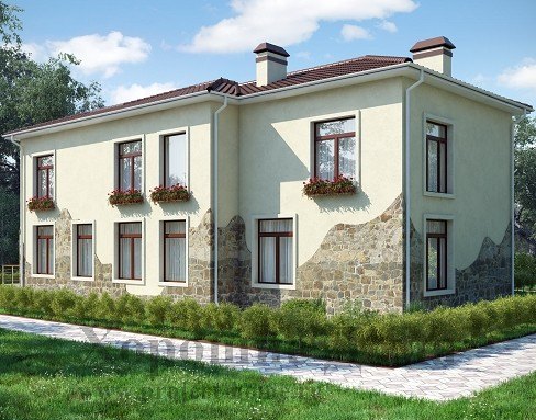 Фасад дома – декоративная штукатурка с элементами декора в виде облицовки натуральным камнем.