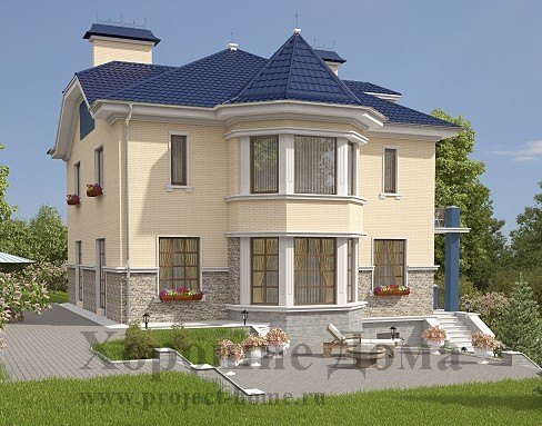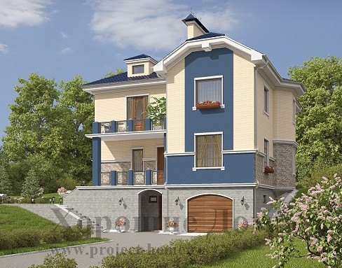 Проект этого загородного особняка поражает своей удивительной лёгкостью, воздушностью, оригинально подобранными элементами архитектурного декора, которые придают зданию законченный облик и особую изящность. Удачное решение цветовой гаммы в отделке фасада с применением природных материалов. Одной из главных особенностей особняка является то, что его можно возводить на участках с неоднородным рельефом, он очень органично вписывается в окружающий ландшафт.