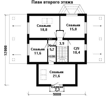На втором этаже разместилась зона отдыха - там расположены четыре спальни и просторная ванная комната. Самая большая по площади спальня имеет выход на балкон.