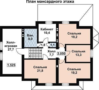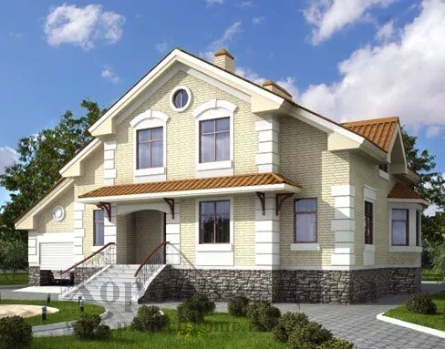 Один из самых интересных современных проектов домов. Двухэтажный коттедж площадью 265,8 кв. м. предлагает комфортное размещение довольно большой семьи. В настоящем проекте предусмотрено практически всё для ведения полноценной загородной жизни. Тут есть и гараж для двух семейных авто, и просторное помещение под игровой зал площадью 27,7 кв. м., удачно расположенный на втором этаже, и четыре спальных комнаты размером от 13,3 кв. м. до 21,8 кв. м. Благодаря удачной планировке, приемлемо длительное размещение гостей или родственников.