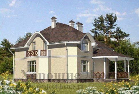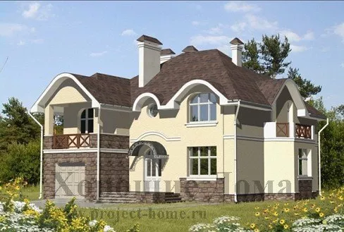 Ненавязчивый и оригинальный дизайн экстерьера этого проекта является прекрасным архитектурным решением для семьи, подыскивающей дом «с изюминкой». Округлые скаты крыши, ее плавные переходы, спокойные и правильные округлые черты придают данному особняку своеобразную уникальность среди стандартных проектов, окружающих нас каждый день.