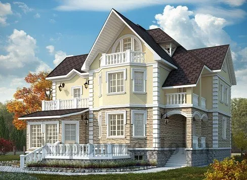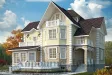 Этот проект загородного коттеджа в английском стиле удовлетворит самый взыскательный вкус. Белоснежные элементы архитектурного декора придают зданию воздушность и делают его похожим на сказочный сахарный домик.