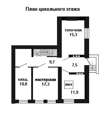 Кроме того коттедж имеет полноценный цокольный этаж с несколькими подсобными помещениями и возможностью создания таких комнат, как мастерская, кладовая, бильярдная, игровая и т.д.