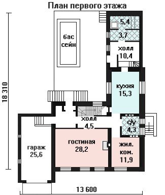 Дом из газобетона с гаражом и бассейном 13.6x18.4 263.7 кв.м.