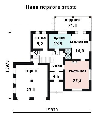 Все помещения особняка расположены компактно в рамках общего дизайна и гармонично вписываются в единый стиль домашнего комфорта. Подсобные помещения находятся на первом этаже здания, при этом сама общая площадь дома расходуется довольно экономно, включая в себя все необходимые комнаты и дополнительные помещения.