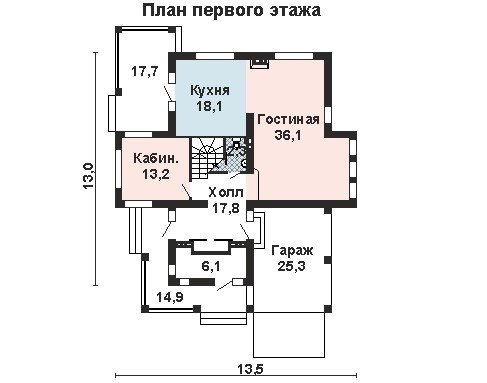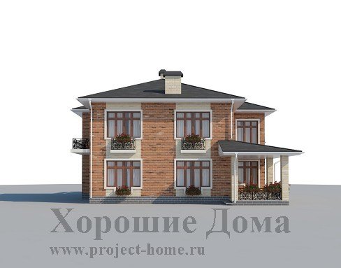 Комфортабельный коттедж площадью 208,9 кв. м. отлично подойдет для полноценного проживания большой семьи. Проект предусматривает отдельное помещение под навесом для семейного автомобиля. В холл оригинальной формы ведет два парадных входа откуда можно попасть в большую гостиную комнату 36,1 кв. м. или маленький рабочий кабинет 13,2 кв. м.