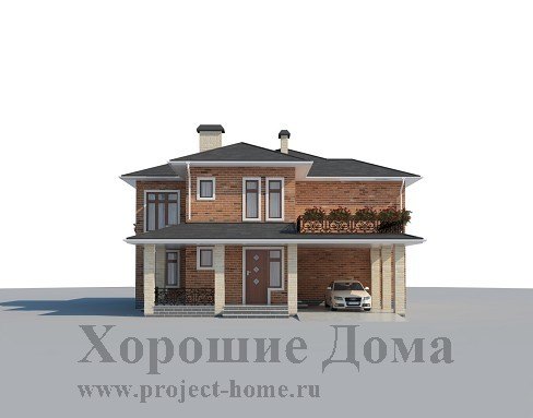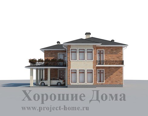 Дом из газобетона с навесом для автомобиля 13x13.5 208.9 кв.м.