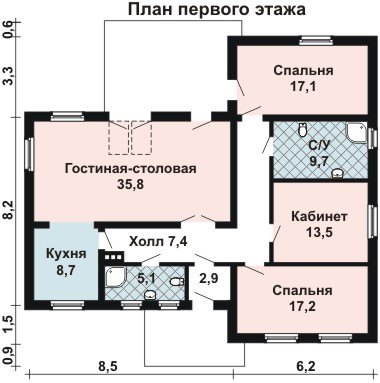 Зона отдыха – это две спальни, ванная комната и кабинет, который при желании может быть переоборудован в дополнительную спальню.