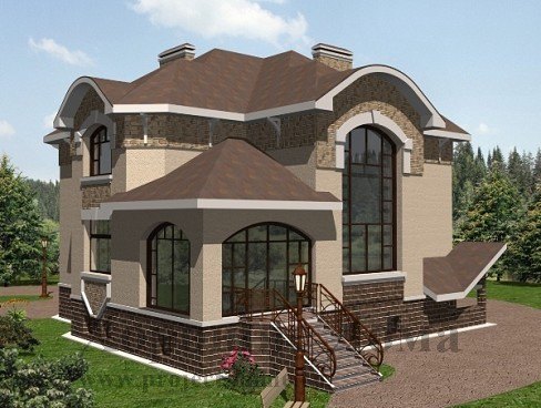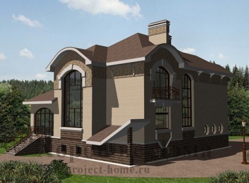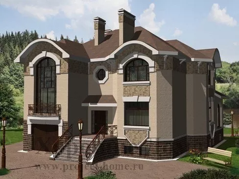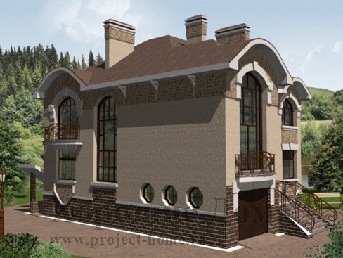 Проект респектабельного загородного особняка выполнен в лучших традициях английского классицизма. Даже при мимолетном взгляде на этот особняк вас долго не покидает чувство стабильности, надёжности, вот уж действительно, мой дом - моя крепость. Отделанный натуральным камнем цокольный этаж, в котором расположена хозяйственная зона и зона отдыха, включающая в себя бильярдную и тренажёрный зал. Высокое крыльцо с коваными перилами украшает главный вход, на первом этаже располагается зона для приема гостей, здесь имеется кухня, столовая и светлая гостиная. Также на первом этаже расположен гараж для одной автомашины.