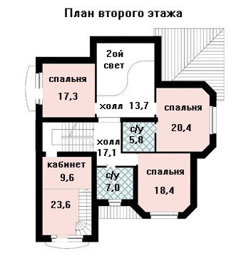 Спальни всех обитателей дома и рабочий кабинет хозяина дома располагаются на втором этаже.