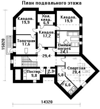 Цокольный этаж предназначен под хозяйственно-бытовые нужды и для активного отдыха: там собраны помещения под все технические службы дома, вместительные кладовые, просторный винный погреб, спортивный зал с душевой.