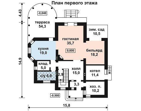 Дом с террасой и зимним садом 14.9x15.8 255.3 кв.м.