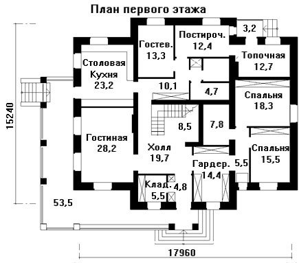 - габаритные размеры дома – 17980х15240