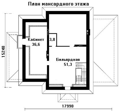 - мансарда- (S-92.6 m2) – кабинет, бильярдная, черд