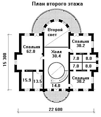 - 2 этаж - холл, второй свет, спальные комнаты, ванные комнаты