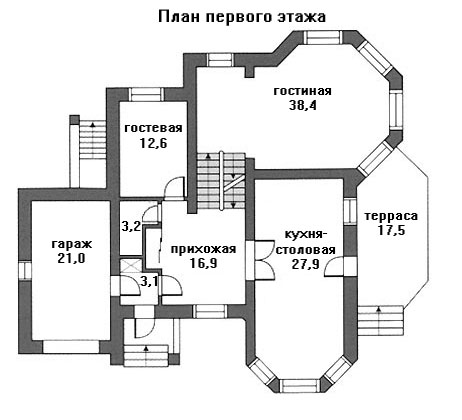 - 1этаж - гараж, гостевая, с/у, гостиная, кухня, столовая, терраса
