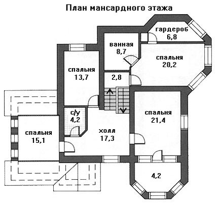 - мансарда - спальные комнаты- 4, ванные комнаты.