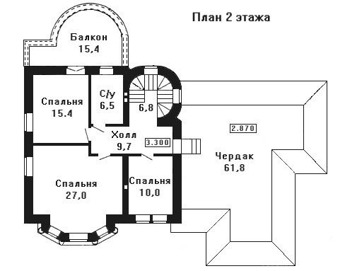 Высота второго этажа - 2.7 м ,