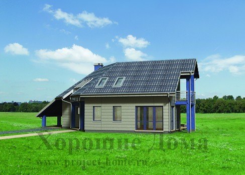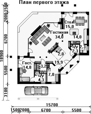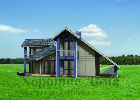 Современный стильный коттедж с необычной планировкой и урбанистическим дизайном площадью 205,8 кв. м. Внешний облик особняка подходит для постройки в городской черте. Около дома оборудована крытая площадка для семейного авто. Центральную часть первого этажа занимает большая гостиная комната площадью 34 кв. м. с отдельным выходом на террасу, ведущую в сад. Необычная форма гостиной позволяет придать ей уникальное оформление и создать неповторимое ощущение гармонии в доме. Данный проект прекрасно подойдет для воплощения на участках необычной формы и рельефа.