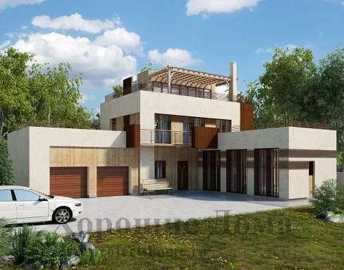 Проект дома углом в стиле модерн, 328.3 кв.м.