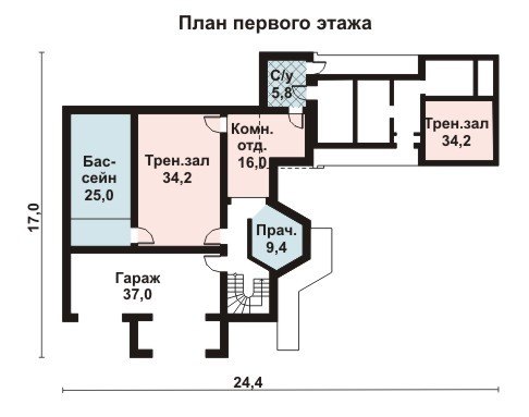 Дом из газобетона в стиле минимализма с бассейном 17x24