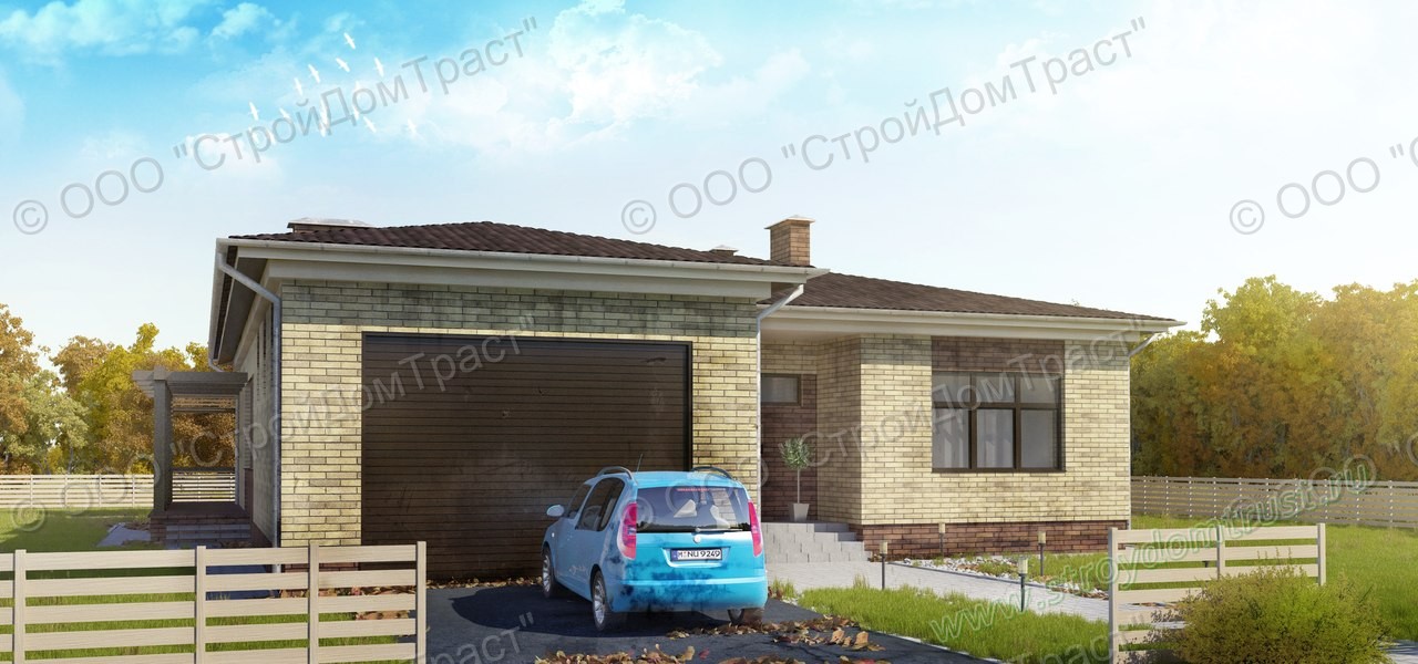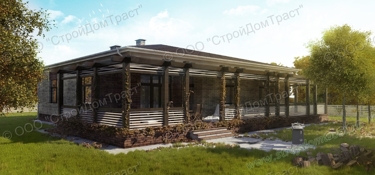 Стильный одноэтажный коттедж для поклонников простых и четких архитектурных форм.