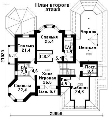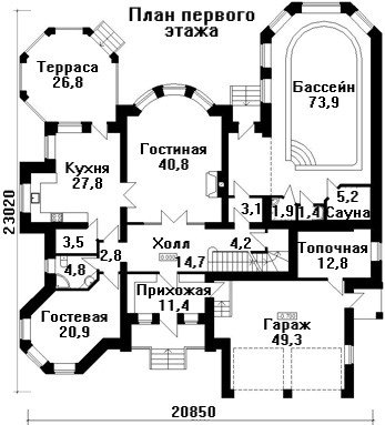 Огромный дом из газобетона с террасой, бассейном, гаражом 20.85x23.02 617.33 кв.м.