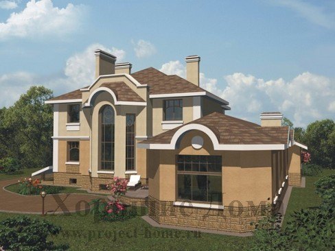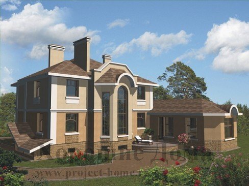 Трёхэтажный коттедж из газобетона с отделкой искусственным камнем 625 кв.м.