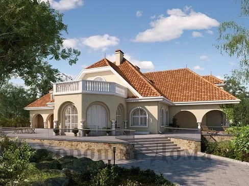 Дом из газобетона с арочными окнами 21.36x29.65 447.3 кв.м.