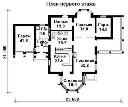 - габаритные размеры дома: 29650х 21230 (в осях)