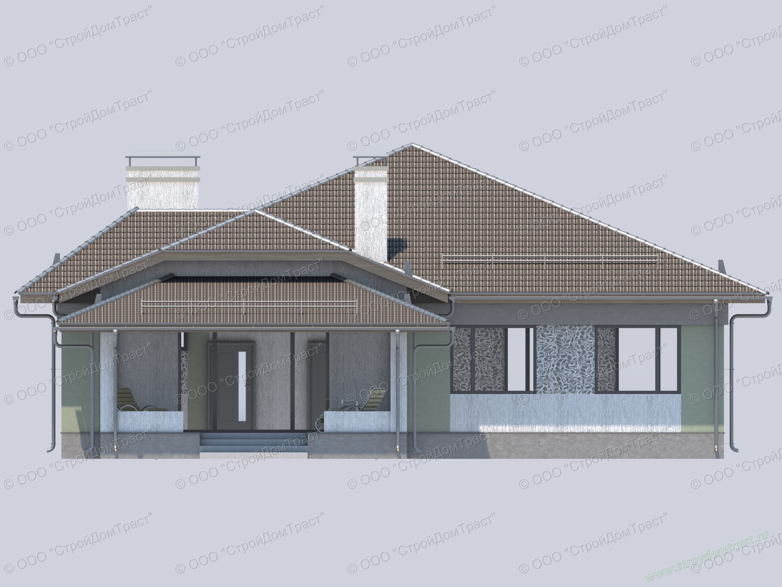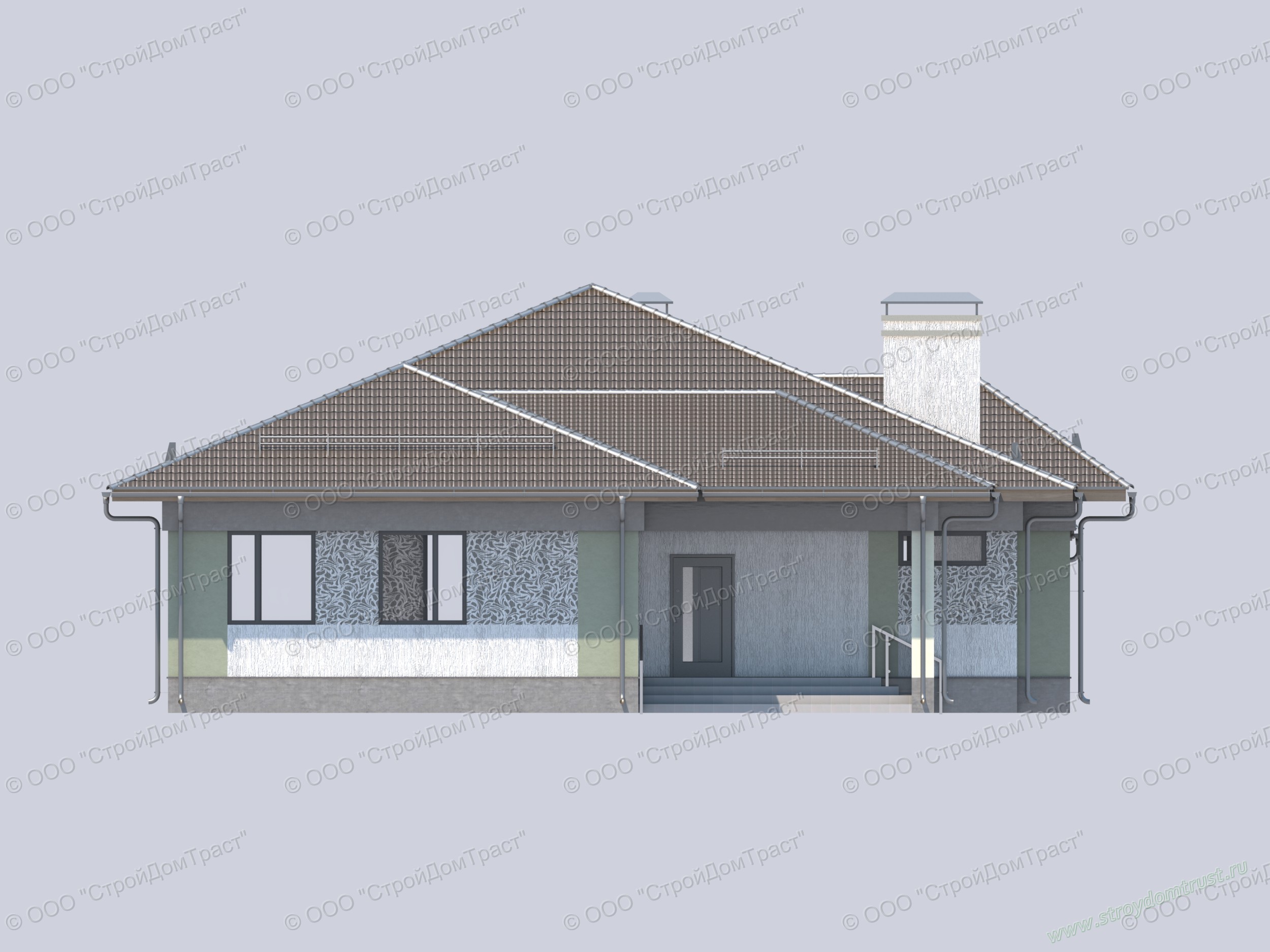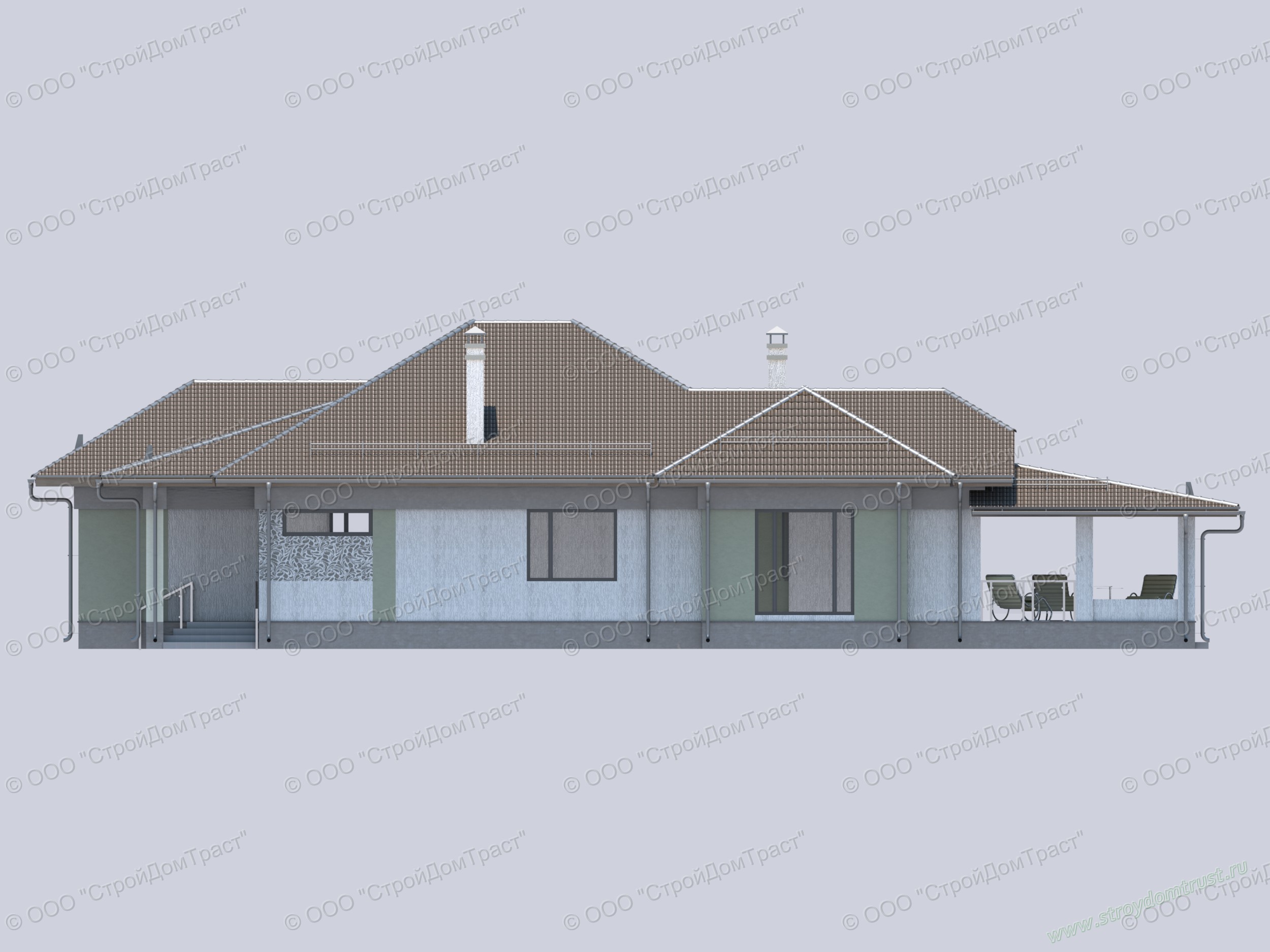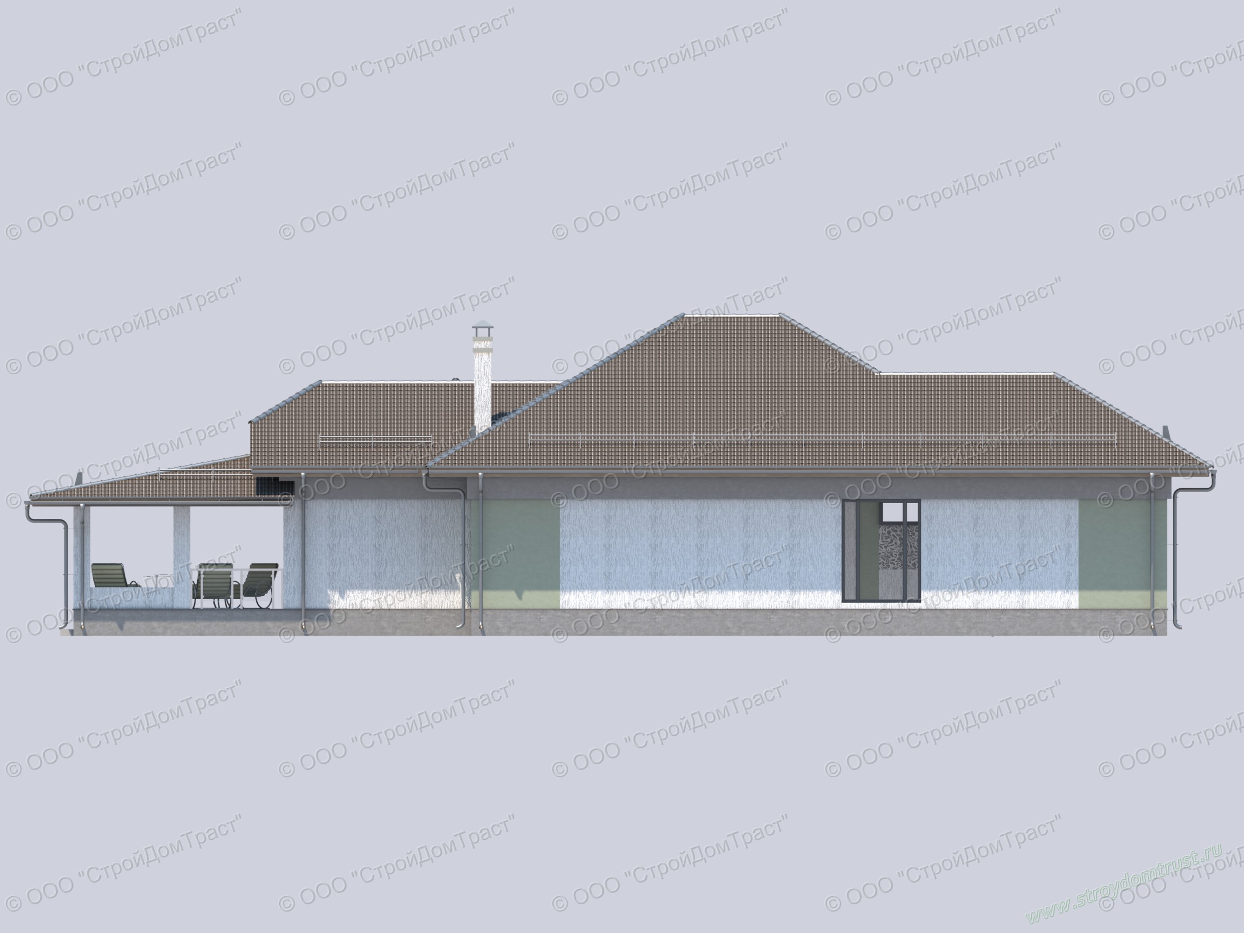 Эффектный одноэтажный коттедж для небольшой семьи. Такие дома выглядят немного непривычно для нашей страны, но в западных странах они широко распространены и пользуются большим спросом благодаря относительной простоте постройки и содержания.