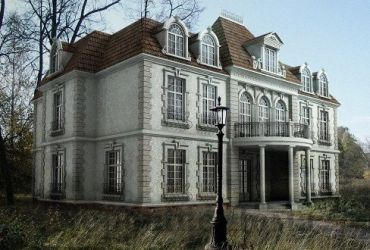 Классический загородный особняк для VIP - персон впечатляет своими симметричными строгими формами, двухярусной террасой с изящной балюстрадой, эффектным фронтоном и гармоничным, спокойным дизайном фасада с небольшими элементами архитектурного декора.