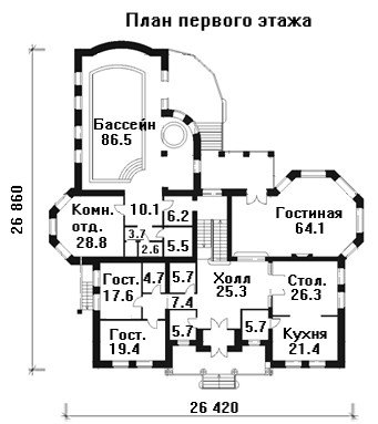 Габаритные размеры дома: 26420 х 26860 (в осях)