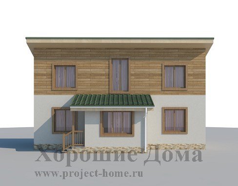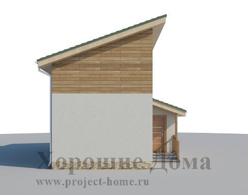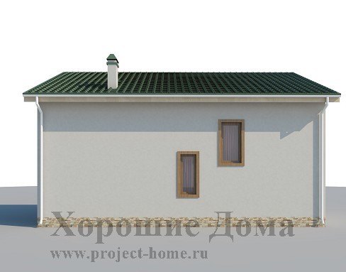 Удивительно компактный загородный коттедж, без труда поместится на небольшом участке земли, очень лаконичный и экономичный, для постоянного проживания семьи численностью до трех человек. Может рассматриваться также как вариант домика для гостей или дома для проживания домашнего персонала. Крытая застекленная веранда, являющаяся предбанником у парадного входа в коттедж, занимает небольшую площадь в 5,4 кв. м.