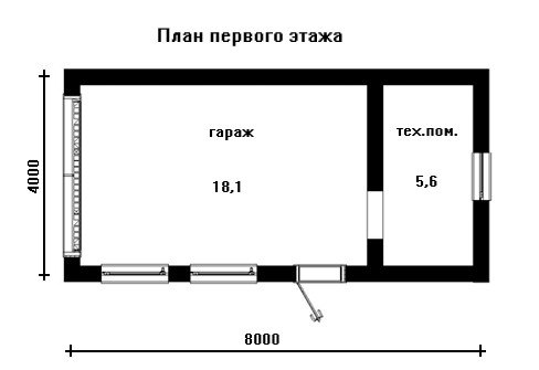 Экономичный одноэтажный гараж 4x8 м с технической комнатой