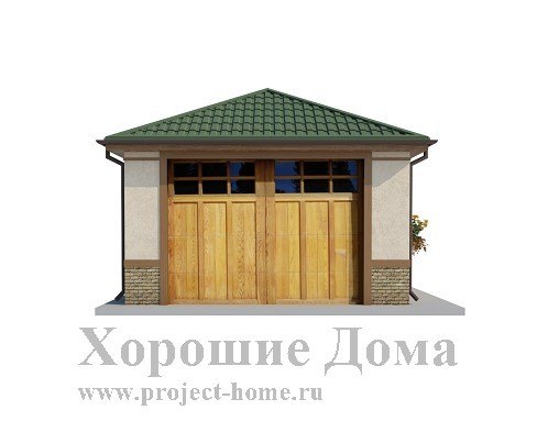 Такая постройка представляет собой достаточно удобный современный гараж и станет отличным дополнением на участке рядом с домом для постоянного проживания. Длина стен постройки составляет 4 м. и 8 м. Гараж оборудован большими двустворчатыми воротами, открывающимися наружу. Помимо этого дополнительное техническое помещение имеет собственный отдельный вход.